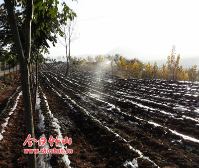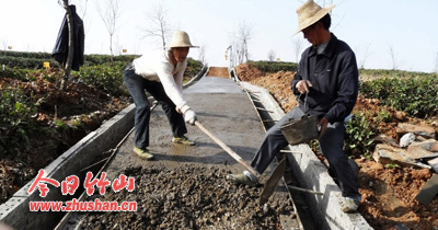 今日竹山网消息 11月18日,圣水公司的生态茶园基地的工人正在用砖、水泥修作业道,并在作业道两边用砖砌排水沟,已在2500亩生态有机茶园修剪作业道120余条,安装太阳能杀虫灯20余盏。每亩茶园地里安装12个喷头,建一个蓄70吨水的水塔一座,利用55口旱地水窖的水,一遇天旱,用微型增压泵抽水灌溉茶叶,达到路、渠、水、杀虫灯、杀虫黄版、绿化六配套,旱能灌溉涝能排,增产增效。(王义富)