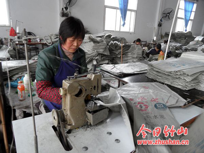 今日竹山网消息 4月11日,走进宝丰镇明宏塑编厂,只见一群妇女正在把织好的塑料编织袋封口打捆装运上车,忙得热火朝天。据公司经理蔡明宏介绍,大部分留守妇女是农民,男的在外打工挣钱,女的在厂打工,既照顾了家庭、父母,又便利了孩子上学读书,同时一个月能挣1000多元。目前,全镇有117名留守妇女在该厂就了业,公司年创产值2000万元,实现税收70万元。(王义富)