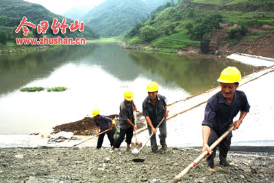 今日竹山网消息 7月14日,施工人员正趁着天晴加紧对城关镇明清水库进行除险加固。该水库始建于1927年,水库集雨面积5.7万平方米,总库容120万立方米。工程经初步设计论证、招投标,于4月2日开工建设,目前已完成投资360万元,完成总工程量的90%。据介绍,我县共有小(二)型水库45座,去年以前完成了23座水库安全鉴定,今年已规划对15座病险水库进行除险加固,开工建设规模以上水利工程31处,共完成投资2000多万元。(陈昌荣 冯家斌)