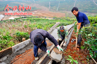 今日竹山网消息 11月16日,笔者在宝丰镇龙井村330亩老茶园低丘岗地改造项目区看到,做岸垒坪、浆砌路沟渠、修复水毁涵闸、旧塘清淤同步进行,已完成工程总量的90%。