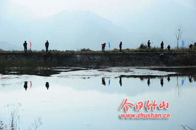 今日竹山网消息 11月24日,溢水镇燕子山村的村民在县水务局技术员的指导下,对塘堰进行清理。据全省水利工作暨秋冬春水利建设动员会议精神和省、市关于开展塘堰整治工作要求,我县及时组织召开了专门会议,安排部署全县塘堰整治试点工作,并制定了塘堰整治工作实施方案。通过调查摸底,全县需要整治的塘堰3749口,需要投入资金约8500余万元。按照省水利厅的要求,今冬首先在溢水、麻家渡、宝丰三个乡镇办好塘堰整治试点,计划完成三个试点乡镇0.1—10万立方的塘堰整治346口,新增蓄水能力150万立方以上,改善灌溉面积13000亩,完成建设投资约2300万元。(全正 王万彩)