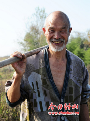 七十岁的老人也自发参加了塘堰清理工作,他说,这是好事,以后灌溉都不愁了