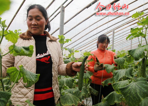 今日竹山网消息 3月2日,擂鼓镇红岩村农民正在大棚蔬菜示范基地采摘黄瓜,准备上市销售。近年来,擂鼓镇为增加农民收入,加大科技投入,引导农户发展反季节蔬菜600多亩,不仅丰富了市民的“菜篮子”,也为农民致富创出了新路子。(操春林 章海波)