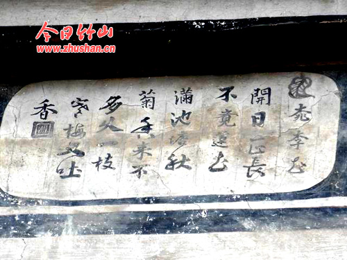 陈家花屋的屋檐下有一首诗,不知出于何人之手,经过多年的风吹日晒,至今镶嵌在屋檐下方,清晰可见。诗的第一句为“桃李花开日正长”,意思说桃子花、李子花开时天最长,指的就是阳春三月。第二句是“不觉莲花满池塘”,意为夏天荷花开满池塘,第三句为“秋菊香来不多久”,意思是秋天菊花虽香,但香不到多长时间,第四句“一枝寒梅吐又香”。冬天,梅花香自苦寒来。四句诗,写的是春、夏、秋、冬。(王义富 何金刚 操娟)