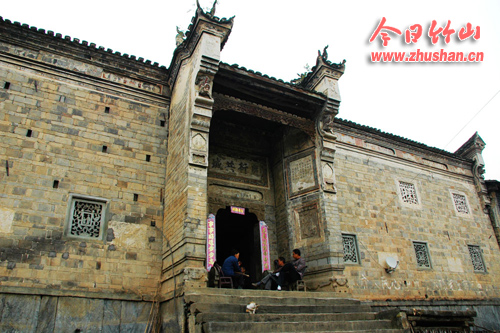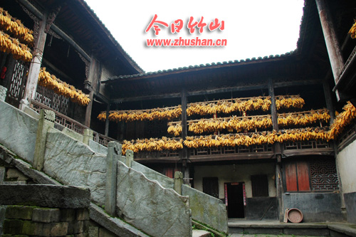 记者看到,房子每个屋角上都有四只龙爪状的飞檐狰狞伸向空中,房檐下绘有长幅壁画,图中人物刻画细致生动,直到现在色彩依旧鲜艳。 大门门匾上“庆衍共城”4个大字,庄重饱满而有力度,乃名家之手。 沿着13级青石板台阶而上,跨过门楼就是前庭。花屋的前庭有一个大天井,二楼有一个大戏台,建造工艺精美,犹如宫殿。不难想象,当年日夜笙歌,歌妓翩翩起舞,看客吹胡瞪眼,生活之奢侈。