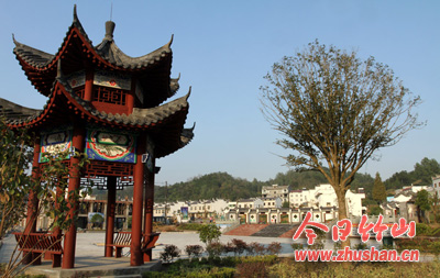从溢水集镇沿省道向西前行一公里,便来到了东川十星级农民文化广场,它背依青山,紧邻小溪,周围是一片整洁时尚的移民小区。广场整体呈现出中国传统的古朴端庄的建筑风格,建有六角亭、星缘门、标志石等景观,既有花木园林,也有宣传十星文化的窗口,成为竹房城镇带上的一个亮点。整个广场占地14亩,可为周边4500人提供休闲健身。(周立国 王素冰 廖祖平摄)