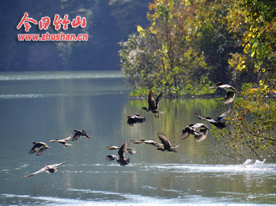 今日竹山网消息 11月12日,在文峰乡东钦村黄龙库区水面上,上百只野生鸳鸯在这里畅游嬉戏,十分壮观。这是我县堵河境内首次发现的一处野生鸳鸯栖息地。据当地村民介绍,近年来,由于生态环境逐年好转,加至堵河流域水质好,小鱼小虾多,为野生鸳鸯提供了充足的食物,迁栖到此的越冬鸳鸯越来越多。目前,当地政府及林业部门己组织村民自觉对鸳鸯进行保护,为各类水鸟提供良好的生存环境。(操春林 林敏)