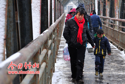 今日竹山网消息 12月26日凌晨,山城迎来今冬首场雪,让人们切实感受到了冬日的气息和寒意。放眼望去,连绵起伏的山坡上,覆盖着白皑皑的冰雪,大有“千里冰封,万里雪飘”之意境。截至中午,整个山城仍笼罩在大雪之中。雪中的人们步履匆匆,不少汽车都降低了速度小心翼翼地前进着。在此提醒大家,雪天路滑,出行时注意安全。(李永芳)