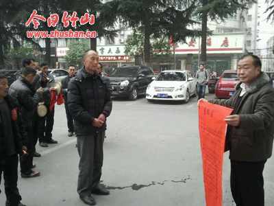 今日竹山网消息 1月29日,上访了数十年的老户陈绪美请来乡邻,敲锣打鼓,给县信访局局长黄崇周送来自家养的一只山羊,他在感谢信里写道:“有人问我山羊送到哪里去?我说送给恩人表表心!俗话说大恩不言谢,我还是要谢谢党委政府,谢谢帮助了我的黄局长!”