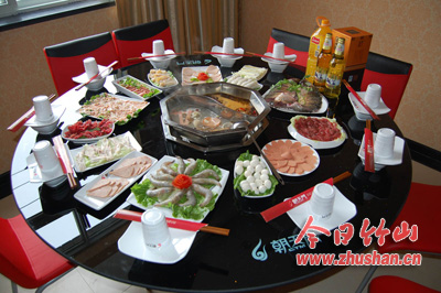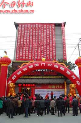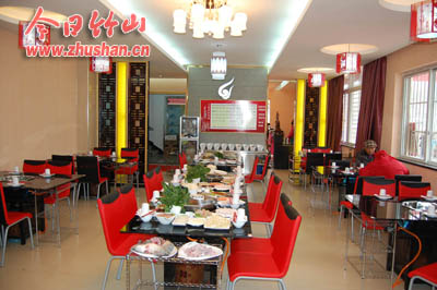 今日竹山网消息 3月2日,位于城关镇莲花村村委会旁的重庆“朝天门火锅城”竹山连锁店红幅高悬,锣鼓喧天,当日上午11时,火锅城开业剪彩庆典仪式隆重举行。