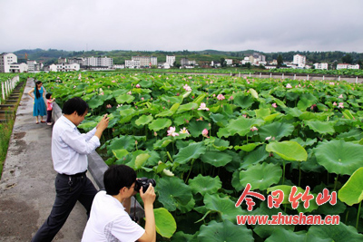 接天莲叶无穷碧,映日荷花别样红。6月23日,游客在麻家渡镇农民袁涛创办的千亩生态观光农业示范园里拍照游玩。袁涛在县计生局、计生协等单位的大力支持下,于2011年9月投资近200万元,通过土地流转方式,将村里1000多亩田地转包下来,兴建特色农业观光示范园。他还联合19位农民成立了“麻家渡镇汇城水生蔬菜专业合作社”,按照“合作社+农户+基地”的经营模式,已发展入社农户235家。在种植莲藕的同时,实行“藕鱼”“藕虾”联作等种植模式,实现农田效益最大化。 (朱本双 包泽敏)