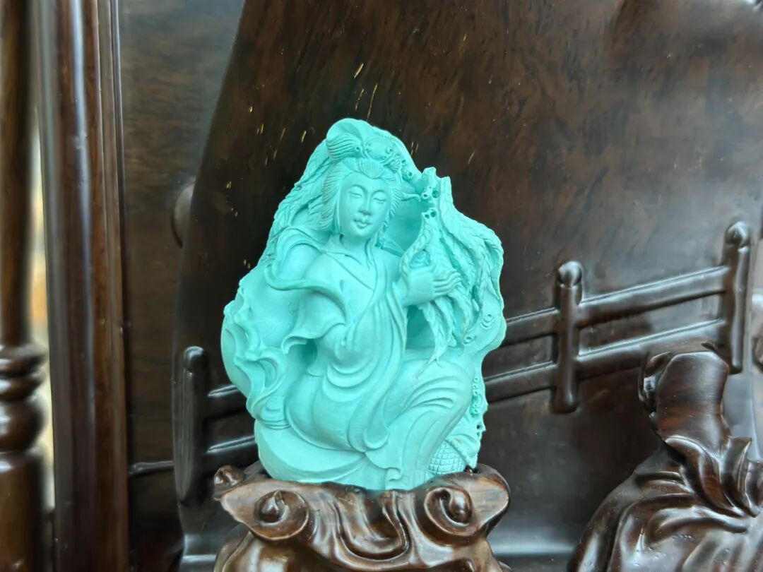 这4个精致小巧的雕刻摆件,就是本期的主角——沉鱼落雁闭月羞花,它还原了西施浣纱、昭君出塞、貂蝉拜月、玉环赏花这4个经典场景,在前不久落幕的第三届“女娲补天杯”绿松石雕刻大赛上,以精湛的雕工获得了特别金奖。