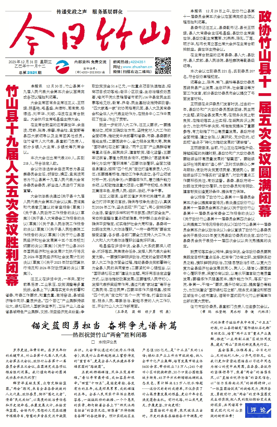 政协竹山县十一届五次会议圆满闭幕