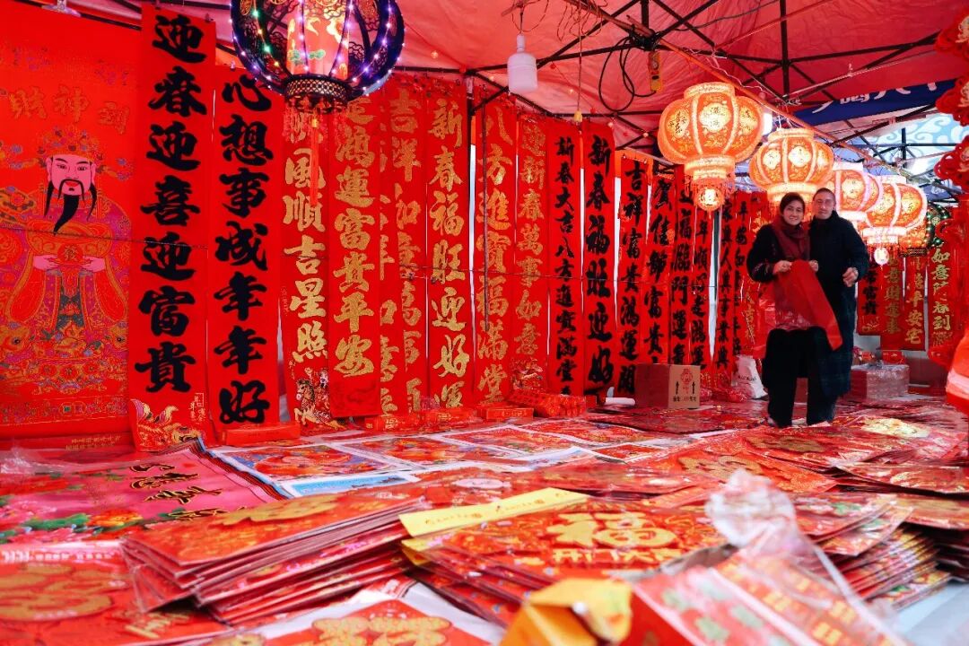 在县城文化市场,悬挂在货架上的红灯笼错落有致,马年生肖主题挂饰、立体福字、精巧窗花、喜庆的对联琳琅满目,让人眼花缭乱。市民们穿梭其间精心挑选,品味字句间的美好期许,为新春增添了满满的暖意。